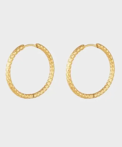 Smukke Og Store Hoops I Guld Med Et Flot Og Unikt Mønster Over Det Hele. De Kan Både Bruges Til Hverdag, Eller Styles Med Et Festligt Outfit!Materiale:14K Guldbelagt Rustfrit Stål.Størrelse: 3 Cm