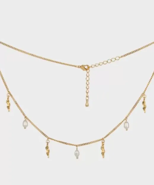 Denne Smukke Og Feminine Halskæde Er Designet Med Inspiration Af Den Store Perletrend. Den Er Virkelig Let At Have På, Og Kan Sagtens Styles Med En Anden Halskæde, For Et Tungere Look. Elsker Du Designet Med Bølger Og Perler, Kan Den Matches Med Vores Hali Pearl Earrings Eller Vores Marie Earrings.Størrelse: 36 Cm + 5 Cm Forlænger.Materiale: Guldbelagt Kobber.Vær Opmærksom På At Perlerne Er Unikke, Og Kan Afvige Fra Produktbilledet.