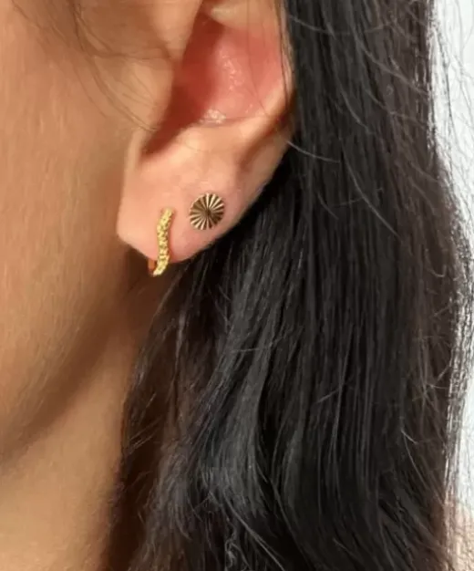 Smukke Ørestikker Med Flot Gravering I Overfladen For Et Moderne Og Feminint Udtryk. Den Oplagte Basisvare I Din Smykkesamling, Og Som En Del Af Vores Waterproof Kollektion Har Du En Ørering Til De Næste Mange År!Materiale:14K Guldbelagt Og Hvidguldbelagt Rustfrit Stål.Størrelse: 0,6Cm I Diameter
