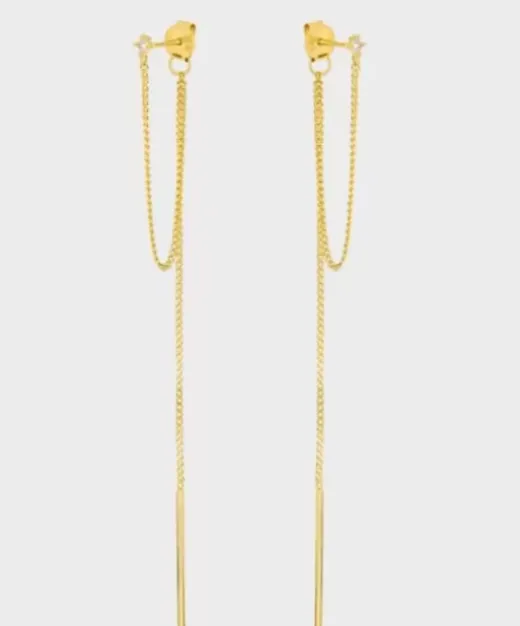Disse Øreringe Er Super Smukke Og Feminine. Kan Styles I To Øre, Eller Blot I Ét Hul Ved At Lade Kæden Hænge.Materiale: Guldbelagt Sterling Sølvstørrelse: 7 Cm Kæde