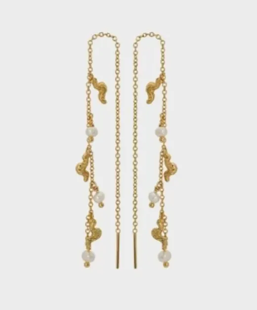 Klassiske Perleøreringe, Med Smukke Bølgeformet Vedhæng. Style Dem Med Andre Smykker Fra Reef-Kollektionen.Materiale: 18K Guldbelagt Og Sølvbelagtstørrelse: 13,5 Cm