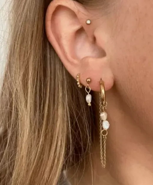 Smukke Kædeøreringe Med Et Fint Og Klassisk Touch, I Form Af Perler. De Kan Både Bruges For Sig Selv Eller Sammen Med Nogle Af Vores Andre Øreringe. De Er Super Fine Stylet Med Både Perler Eller Hoops!Materiale: 14K Guldbelagt Og Hvidguldbelagt Rustfrit Stål.Størrelse: 5Cm X 1.50Cmobs. Perlevedhænget Vil Ikke Kunne Tåle Ligeså Store Mængder Vand Som Kæden Kan. Overfladen På Perlen Vil Kunne Krakelere.Vær Opmærksom På At Perlerne Er Unikke, Og Kan Afvige Fra Produktbilledet.