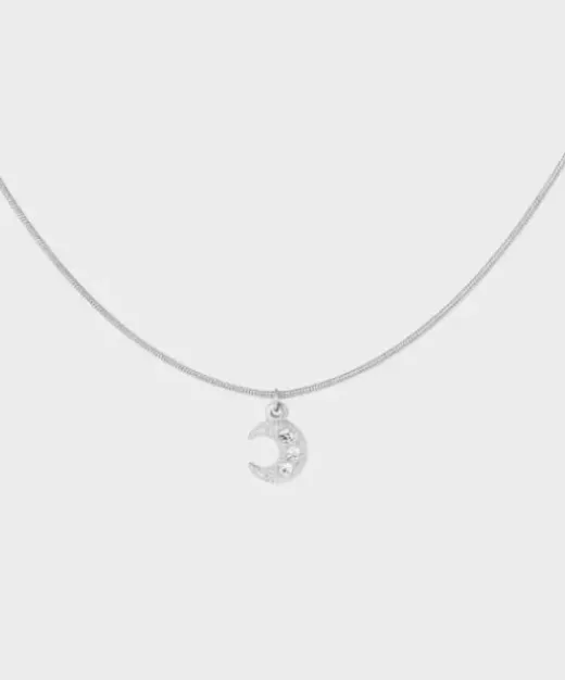 Smuk Og Blank Halskæde Med Et Fint Måne-Vedhæng.Materiale:14K Guldbelagt Og Hvidguldbelagt Rustfrit Stål.Størrelse: 40 Cm + 5 Cm Forlængelse