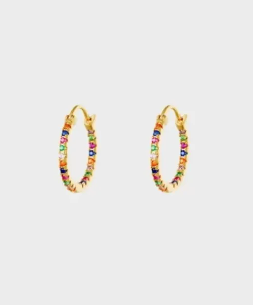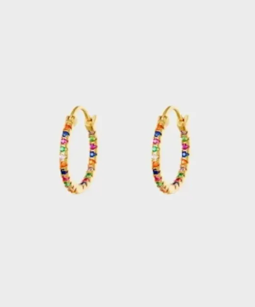 Smukke Kreoler Med Sten Både Udvendigt Og Indvendigt, Så Man Virkelig Kan Se Stenene Når De Er I!Materiale: 14K Guldbelagt Og Hvidguldbelagt Kobber + Zirkoner.Størrelse: 1,53 Cm.
