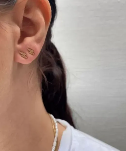 Rå Og Fine Ørestikker Med Lyn, Som Kan Bruges Sammen Eller Hver For Sig.Materiale:14K Guldbelagt Og Hvidguldbelagt Rustfrit Stål.Størrelse: 8 Mm