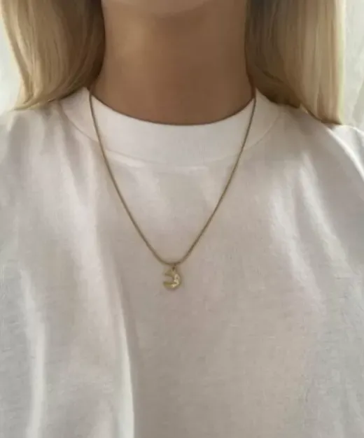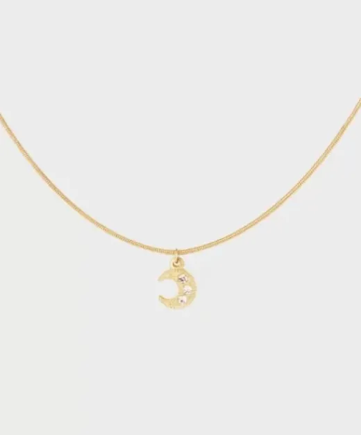 Smuk Og Blank Halskæde Med Et Fint Måne-Vedhæng.Materiale:14K Guldbelagt Og Hvidguldbelagt Rustfrit Stål.Størrelse: 40 Cm + 5 Cm Forlængelse