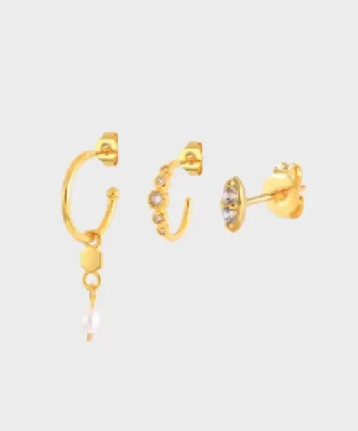 Materiale: Guldbelagt Kobberstørrelse: 1,5 Cmobs! Sættet Består Kun Af 3 Individuelle Øreringe, Så Ønsker Du 3 Øreringe Til Hvert Øre, Skal Du Bestille 2 X Sæt.Vær Opmærksom På At Perlerne Er Unikke, Og Kan Afvige Fra Produktbilledet.