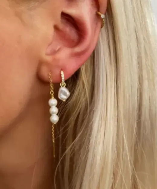 Super Fine Kædeøreringe, Som Kan Trækkes Igennem Øret Så Man Kan Variere Hvor Lang Øreringen Skal Være. Kan Bruges For Sig Eller Styles Med Eksempelvis Vores Julia Pearl Ørestikker.Vær Opmærksom På At Perlerne Er Unikke, Og Kan Afvige Fra Produktbilledet.Materiale: Guldbelagt 925 Sterling Sølv