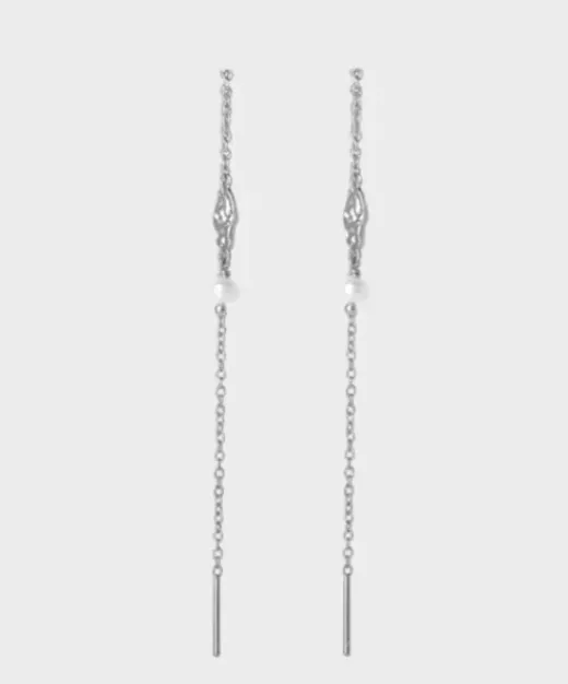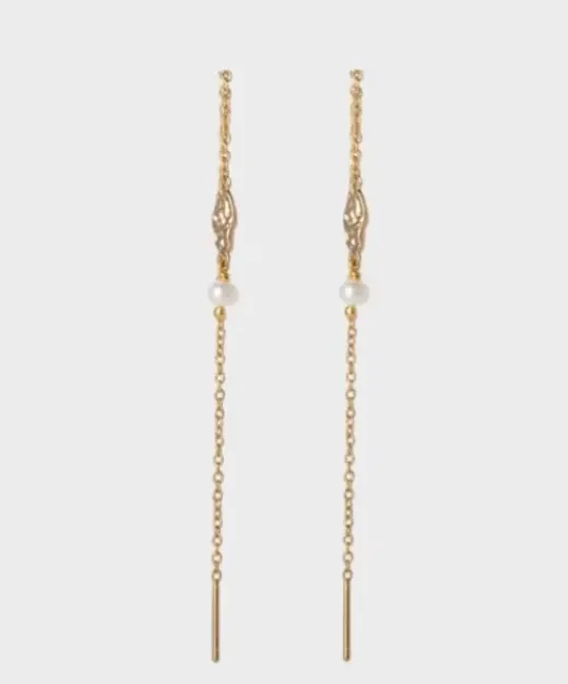 Smukke Kædeøreringe Med Vedhæng Bestående Af Perle Og Messing-Belagte Blade.Materiale: Belagt Messingstørrelse: 2Cm Vedhæng Og 8 Cm Kæde